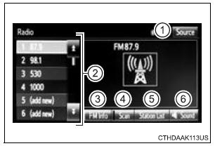 Select “AM” or “FM” on the audio source selection screen to begin listening to the radio.