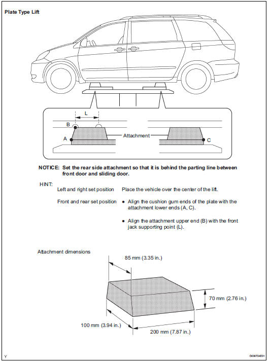 (b) Set the jack and rigid racks to the specified locations of the vehicle accurately.