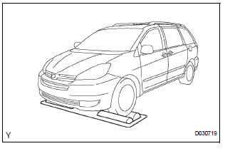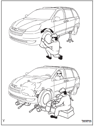 When doing on-vehicle wheel balancing on a fulltime 4WD vehicle, to prevent the wheels from rotating at different speeds in different directions from each other (which could damage the center differential), always be sure to observe the following precautions: